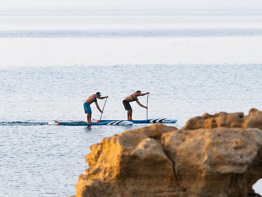 In our SUP courses you will quickly learn the basics of stand-up stand-up paddle surfing, and soon ride your first wave in the Mediterranean.